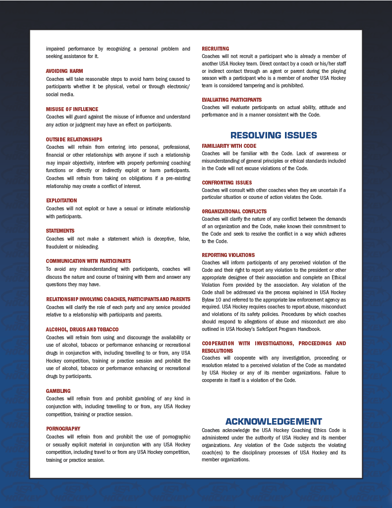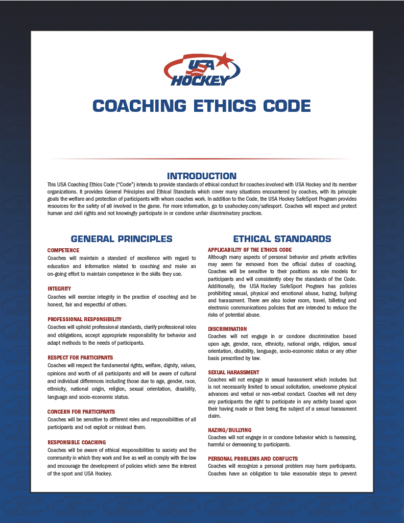 USA Hockey Coaching Ethics Code